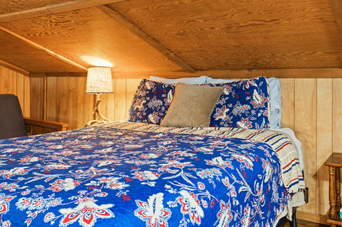 The Original Cabin is exactly what the name infers. It is the original cabin that was built on the property. Many couples find this cabin perfect for them. This cabin is ideal for those who have an appreciation for rustic, with the stone fireplace, wagon wheel chandelier, and hand-cut wood beams. Relax and enjoy the solitude sitting on the covered porch.